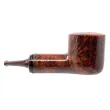 A pretty straight forward reverse calabash in a warm brown color. The briar has interesting grain in flame and a very nice hand made Cumberland stem.