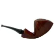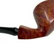 A very interesting modern horn, with a lot going on. The pipe functions as both a canted horn and a sitter. There are so many angels and details on this pipe. A lesser brilliant pipe maker could get all these facets and details wrong, but no our Erik. He steers the lathe safely to the harbor and gets the square descending shank, the semi saddle stem, the cross grain, the very big bowl and pencil thin shank to look amazing. What a pipe.